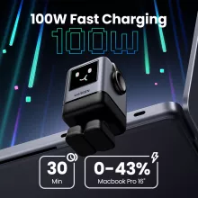 Experience lightning-fast charging with this advanced 100W GaN charger. Designed for ultimate convenience and performance, it powers up everything from the latest smartphones to high-powered laptops in record time. Its unique robot-inspired design adds a futuristic touch to your workspace while delivering serious charging power.