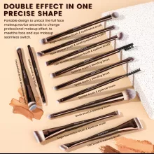 Crafted with ultra-soft, high-quality synthetic hair, each brush glides gently across your skin, delivering a seamless blend of your favorite products. The ergonomic plastic handles offer a comfortable grip, while the double-ended design adds unbeatable value and convenience—giving you 22 functions in just 11 brushes.