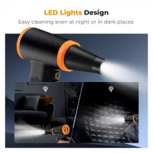Unlike traditional air dusters that run out or lose pressure, this high-performance blower is built to last—and to do more. The brushless motor offers superior power efficiency and longevity, while the ergonomic design and cordless freedom let you clean with precision and ease. The LED light adds a thoughtful touch, helping you target grime even in low visibility. It’s powerful, versatile, and built with the future in mind.