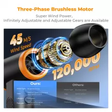 - High-speed 120000RPM brushless motor with top wind force up to 120G