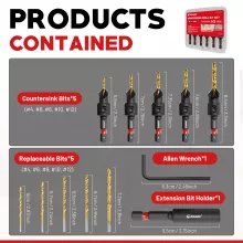 This versatile set includes everything you need for precision countersinking: 5 countersink bits (#4, #6, #8, #10, #12) with matching pilot drills, a 60mm magnetic extension holder for hard-to-reach areas, and an Allen wrench for easy adjustments. All pieces come neatly packed in a durable storage case that keeps your tools organized and protected wherever you go.