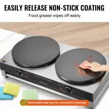 - Quick and Efficient: Dual large cooking plates let you prepare multiple crepes at once, saving time and boosting productivity.