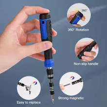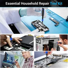 This comprehensive repair kit is crafted from durable chrome-vanadium steel, ensuring long-lasting strength and precision. Each screwdriver bit is magnetized for easy screw handling, while the ergonomically designed non-slip rubber handle provides a secure grip for comfortable use. The 360° rotatable head, flexible extension shaft, and bendable extension rod make it easy to access screws in tight and hard-to-reach places. With multiple screwdriver head types including Phillips, Slotted, Torx, Hex, and more, this kit is designed to handle any repair job effortlessly.