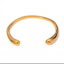 What sets this bracelet apart is its combination of luxury, durability, and timeless design. The 18K PVD gold plating gives it a rich, lustrous finish, while the stainless steel base ensures it is rust-proof, waterproof, and scratch-resistant. This makes it an ideal choice for women who want an elegant piece of jewelry that requires minimal maintenance. The open bangle design adds a contemporary touch to this classic piece, making it both stylish and easy to wear.