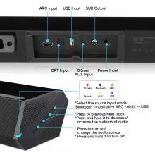 What makes this soundbar special is its combination of power, clarity, and functionality. The 2.1 channel system delivers immersive sound, while the Bluetooth 5.0 ensures effortless pairing with all your devices. With Hi-Res and 3D surround sound modes, you can customize your listening experience to suit any type of content, all within a sleek and compact design.