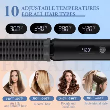 - Adjustable Heat: 10 temperature settings up to 420 °F to suit all hair types.