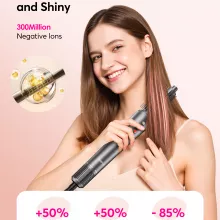 Say goodbye to static and flyaways. With 320 million negative ions released during each use, the hot air styler smooths frizz, enhances shine, and leaves your hair softer and healthier-looking. The ceramic coating distributes heat evenly, ensuring a polished finish every time.