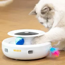 Keep your pets entertained and active with this 2-in-1 interactive cat toy. Designed with both excitement and stimulation in mind, this toy combines a playful feather teaser with a rolling fun ball to spark your cat’s natural hunting instincts. Its automatic electronic modes ensure that your pets never get bored, keeping them engaged whether you’re home or away. Perfect for cats and small dogs, it offers hours of entertainment in one compact toy.