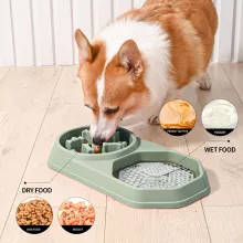 - 2-in-1 Functionality: Features a slow feeder bowl for dry food and a lick mat for wet foods like peanut butter, pumpkin, and yogurt. The lick mat is securely fixed, preventing mess and ensuring it stays in place.