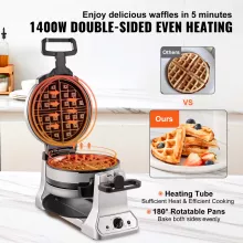 Transform your breakfast routine with our 2-Layer Rotating Waffle Maker, a powerhouse kitchen appliance designed to deliver golden, crispy waffles in minutes. With 1400W of power, this waffle iron effortlessly bakes two 1-inch thick waffles simultaneously, making it the perfect companion for busy mornings or weekend brunches. Whether you’re feeding a hungry family or preparing a delicious treat for yourself, this waffle maker ensures a quick, hassle-free experience.