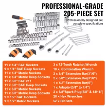 - Versatile Socket Selection: Includes both SAE and Metric sizes in deep and standard sockets to fit a wide range of fasteners.