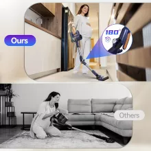 Equipped with a 180° foldable tube, this vacuum makes it easier to clean under furniture without bending or straining. Perfect for pregnant mothers or elderly individuals, it provides comfort and safety during use. The motorized floor brush deep cleans multiple floor types, while the front LED lights reveal hidden dust and debris. Plus, with two adjustable suction modes and a long-lasting lithium battery, you get up to 40 minutes of uninterrupted cleaning.