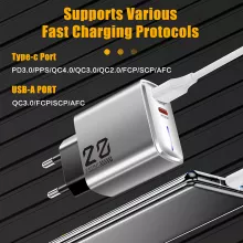 - Dual-Port Design: USB-C and USB-A ports for flexible charging options.