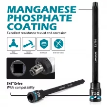 Crafted from high-grade S2 alloy steel bits and CR-V steel sockets, these impact-rated sockets offer exceptional shock absorption and long-lasting wear resistance. A protective manganese phosphate coating ensures maximum protection against rust and corrosion, making this set a trusted choice for years of use. Each socket is precision-engineered for a secure fit that minimizes slippage, giving you greater safety and control.
