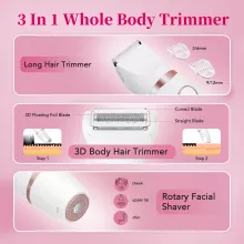 Discover the confidence of silky-smooth skin with this versatile 3-in-1 women’s body hair trimmer kit. Designed for everyday grooming and special occasions, it comes with three precision heads to handle every part of your routine: a rounded trimmer for sensitive areas, a foil shaver for body curves, and a rotary head for flawless facial finishing. Lightweight at just 5.5 oz and fully rechargeable via USB Type-C, it delivers salon-quality results right at home.