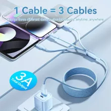 Say goodbye to tangled wires and multiple chargers. This 3-in-1 USB Type-C cable is designed to power up all your devices quickly and efficiently. With multiple connectors, including Type-C and Micro USB, it is perfect for charging and data transfer for smartphones, tablets, and other gadgets. Built with durable braided material and capable of delivering up to 3A current, this cable ensures fast and reliable performance every time.