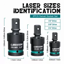 - Complete Set: Includes 3 universal joint sockets – 1/4″, 3/8″, and 1/2″ drives