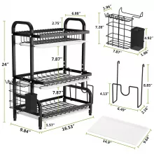 3 Tier Dish Drying Rack with Utensil and Cutting Board Holder
