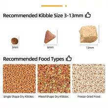 - Adjustable portion sizes to suit various kibble types