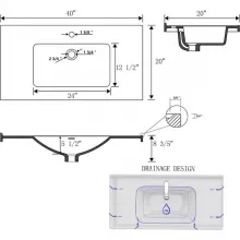 - Durable White Ceramic Sink: The integrated 40-inch ceramic sink is both elegant and practical, featuring an overflow hole to prevent spills and a non-porous surface that resists stains and scratches.