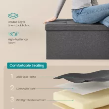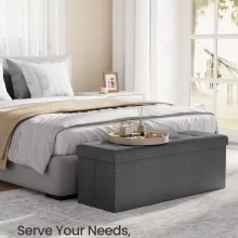 Transform your living space with this elegant 43-inch folding storage ottoman bench. Designed with a chic linen-look fabric and a classic tufted top, it adds a touch of sophistication to any room while offering practical storage and comfortable seating. Its versatile design makes it perfect for the living room, bedroom, entryway, or at the foot of your bed. Whether you need extra seating, a footrest, or a convenient storage solution, this ottoman does it all.