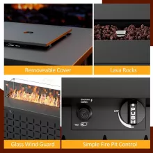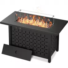 Elevate your patio or backyard with the stunning 43-Inch Gas Fire Pit Table. Designed for both style and functionality, this versatile outdoor fire table delivers an impressive 50,000 BTUs of heat, creating a cozy atmosphere for family and friends to enjoy. With its elegant rectangular design and included glass wind guard, it’s a perfect centerpiece for cool evenings or lively gatherings.