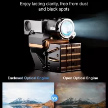 With its advanced features, this projector stands out as the perfect companion for movie buffs, gamers, and families alike. Its fully enclosed optical engine ensures consistent image quality and vibrant colors over its long lifespan. Additionally, the versatile stand allows projection at various angles, making it ideal for both small rooms and expansive outdoor setups.