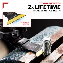 Not all saw blades are created equal. This kit is designed for maximum performance and efficiency. The titanium coating reduces friction, keeps blades cooler, and prevents dulling, so you get 50% longer life than standard bi-metal blades. The U-shaped gullets quickly clear away debris, giving you faster, cleaner, and smoother cuts every time. Plus, they’re universally compatible with most oscillating multi-tools, making them a smart addition to any toolbox.