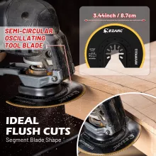 - Semi-Circular Blade (3-1/2″) – Excellent for flush cutting in tight spaces like baseboards and door frames.