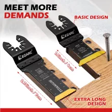 Don’t settle for blades that wear out fast or struggle with tougher materials. This titanium oscillating saw blade set gives you unmatched performance, long-lasting durability, and versatility for every project. Get clean, precise cuts and finish your jobs with confidence—every single time.