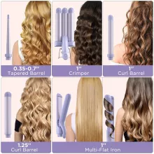 - 5 Styling Tools in 1: Includes a 1″ hair straightener, triple barrel waver, tapered curling wand, and two curling irons (1″ and 1.25″).