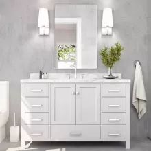 This 55″ white bathroom vanity isn’t just a piece of furniture; it’s a statement of luxury. Perfect for homeowners who value aesthetics and practicality, it fits beautifully in a variety of bathroom styles. The thoughtful design and premium materials make it ideal for enhancing both the function and appearance of your bathroom.