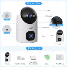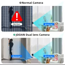 - Dual Lens Design: Equipped with a fixed lens for steady monitoring and a PTZ (Pan-Tilt-Zoom) lens for dynamic viewing. Enjoy real-time monitoring with dual video screens through the Cam720 app.