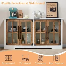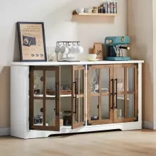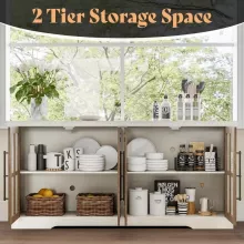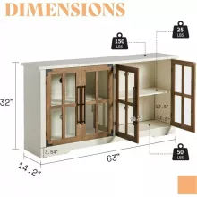 Keep your space organized and clutter-free with this spacious sideboard cabinet. With four tempered glass doors and two adjustable shelves, you can store a variety of items, from dishware and linens to books and décor pieces. The 63″ wide waterproof top provides a sturdy surface for displaying small appliances, decorative accents, or family photos.