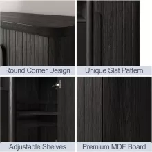 The console boasts a classic yet contemporary look with clean lines, rounded corners, and a sophisticated slat-pattern design on the cabinet doors. Its naturally inspired finish seamlessly blends with any decor, making it an attractive focal point in your home. Ergonomic handles and smooth-opening doors enhance its usability, while the substantial build exudes quality and durability.