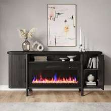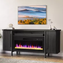 Elevate your home entertainment experience with this elegant 66″ TV stand featuring a built-in 36″ electric fireplace. Designed for TVs up to 75 inches, this versatile entertainment center not only provides a sturdy platform for your television but also creates a cozy ambiance with its advanced fireplace functions. Crafted from sustainable manufactured wood, it combines modern aesthetics with eco-friendly materials to bring functionality and charm to your living room or bedroom.