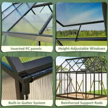 Invest in a greenhouse that combines functionality, style, and durability. Protect your plants, extend your growing season, and cultivate the garden of your dreams with this 6×7.5 FT aluminum polycarbonate greenhouse. Order now and bring your gardening vision to life!