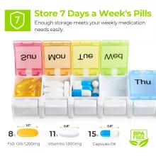 - Keeps pills neatly stored and easy to find.