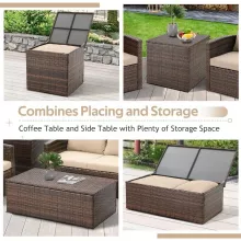 Transform your outdoor area into a chic, functional lounge with this 7-piece patio furniture set. Perfect for casual gatherings, family barbecues, or simply relaxing under the stars, this set is built for comfort and convenience. The two large storage boxes not only help keep your space organized but can also be used as a table to hold drinks, snacks, or decorations, making it ideal for entertaining. The hand-woven PE wicker is weatherproof, ensuring that your set will look great season after season, no matter the weather conditions.