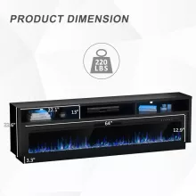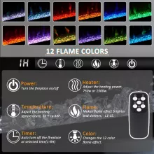 - 64″ Multifunction Electric Fireplace – Enjoy realistic flames with or without heat. Choose from 12 flame colors, 5 dimmer levels, and set the timer or temperature using the remote or control panel. Heats up to 400 sq. ft. with 5100 BTUs per hour.