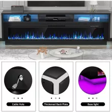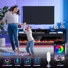 This 70-inch TV stand with a 64-inch electric fireplace is more than just furniture – it’s a statement piece that adds warmth, style, and practicality to your home. Whether you’re binge-watching your favorite shows or hosting guests, it sets the perfect mood with customizable flames and vibrant LED lighting. With its generous storage and sleek design, it’s a smart and stylish choice for any modern living space.