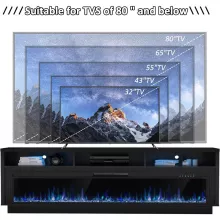 Upgrade your entertainment experience with this stunning 70-inch TV stand featuring a wide 64-inch electric fireplace. Designed for TVs up to 80 inches, this modern console combines sleek style, generous storage, and cozy warmth to create the ultimate living room centerpiece. The built-in electric fireplace offers both beauty and function, with 12 flame colors, 5 brightness levels, and optional heat that warms up to 400 sq. ft. Whether you want a relaxing night in or a vibrant gathering, this TV stand is the perfect addition to your home.