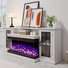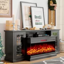 This TV stand is perfect for creating a cozy and stylish entertainment hub. The 3-sided glass fireplace allows everyone in the room to enjoy the mesmerizing flame effects, while the generous storage keeps your space neat and organized. The farmhouse glass doors add a timeless charm, making it a centerpiece that enhances any décor.