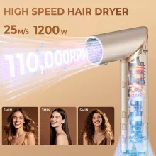 - High-speed brushless motor at 110,000 RPM for ultra-fast drying