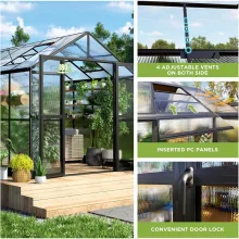 The greenhouse is constructed with 6mm twin-wall polycarbonate panels that provide 99.99% UV protection. This ensures your plants receive ample sunlight while staying protected from harmful rays. The upgraded 5.2-foot wall height allows easy access and eliminates the need to bend over, making gardening more enjoyable and comfortable.