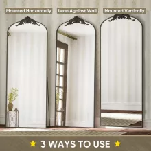 Arched Full Length 64″x21″ Freestanding Floor Mirror with Carved Metal Frame