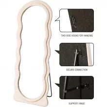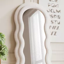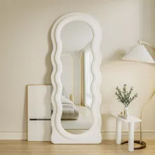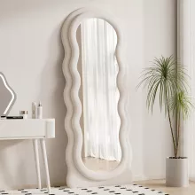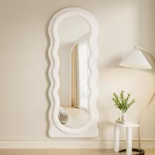 Elevate your home decor with this stunning arched top full-body mirror, designed to blend modern aesthetics with timeless functionality. The unique wavy frame, wrapped in soft flannel and crafted with durable wood, adds a chic touch to any room. Whether you’re checking your outfit or enhancing your living space, this mirror provides the perfect combination of style and utility.