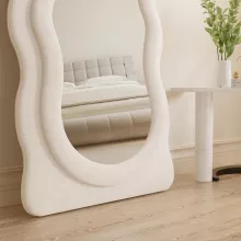 Whether you place it in your bedroom, living room, or entryway, this mirror will enhance your space with elegance. Its wavy design and soft flannel frame make it a standout piece that guests will admire. Need a room to feel larger and brighter? This mirror is your go-to solution, as it reflects natural and artificial light beautifully, creating a welcoming ambiance.