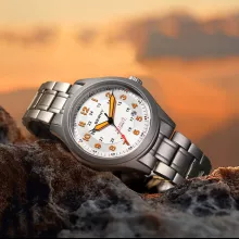 From hiking trails to city streets, this watch is designed to adapt. Its blend of rugged performance and elegant design makes it ideal for men who demand more from their timepiece. The folding clasp with safety provides peace of mind, while the integrated titanium strap adds sophistication and resilience. With its striking round face and luminous Arabic numeral markers, it’s as easy to read as it is stylish to wear.