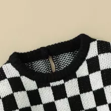 This romper combines practicality with timeless style. The knitted fabric keeps your little one cozy without being too heavy, while the plaid pattern adds a classic touch that suits any occasion. It’s easy to mix and match with leggings, tights, or little booties, making it a versatile piece for everyday wear. Designed with care and free from harsh chemicals, it’s safe for sensitive skin and perfect for your growing baby.